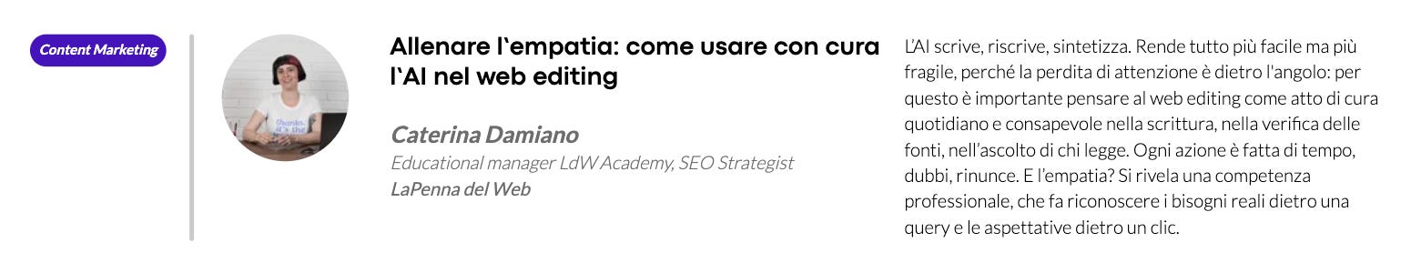 Te ne parliamo perché è il tema al centro dell'intervento di Caterina Damiano (Educational Manager di LdW Academy e SEO Strategist di LaPenna del Web) al We Make Future 🎉